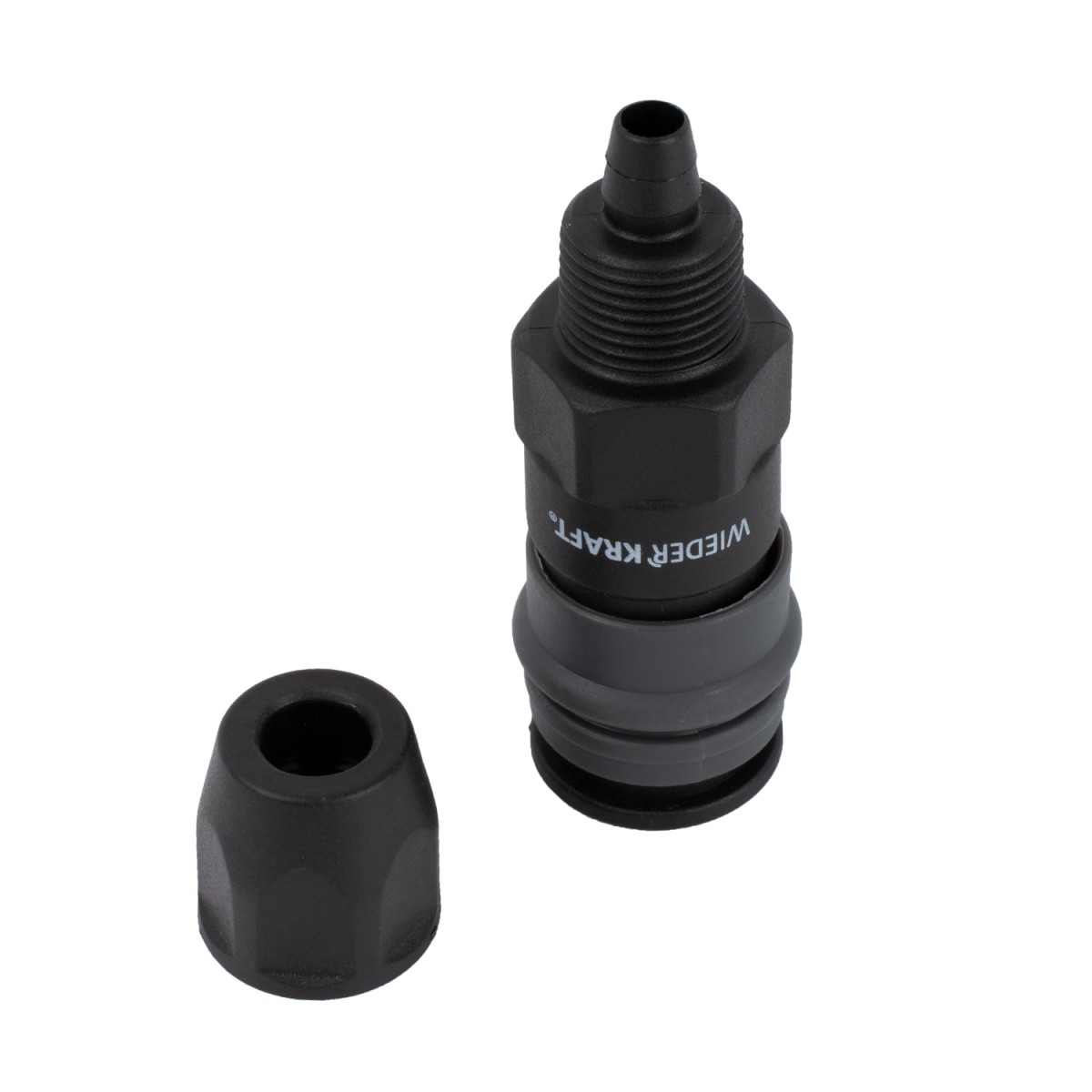 Пневматическое композитное быстроразъёмное соединение (БРС) с креплением шланга обжимной гайкой. Применяется для подключения шланга диаметром 8 х 12 мм.