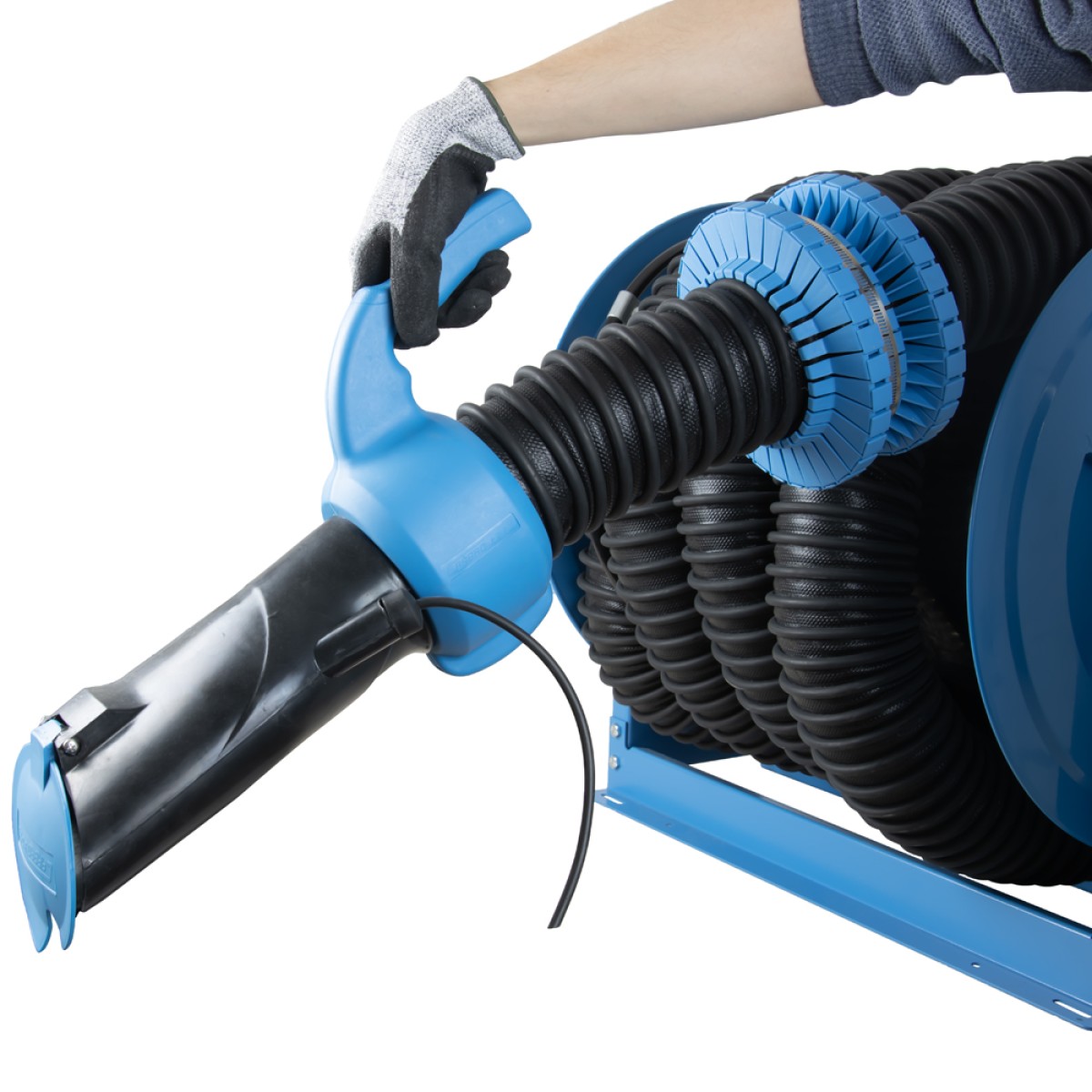 Система обеспечивает эффективный отвод выхлопа от работающего автомобиля в замкнутом помещении.