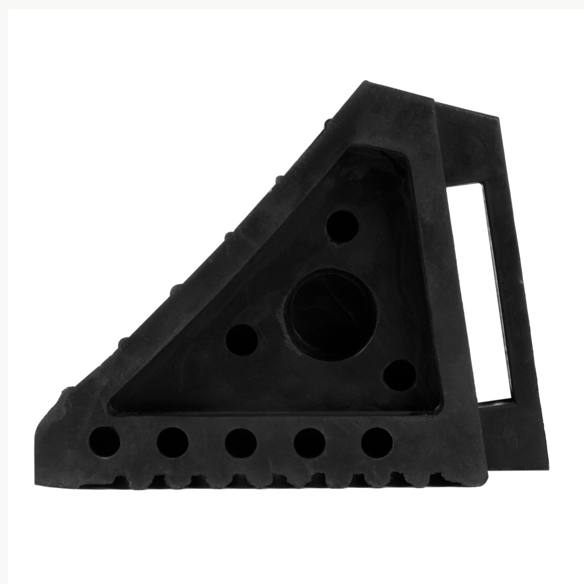 Резиновый противооткатный упор с удобной ручкой для грузовых автомобилей. Материал исключает проскальзывание.