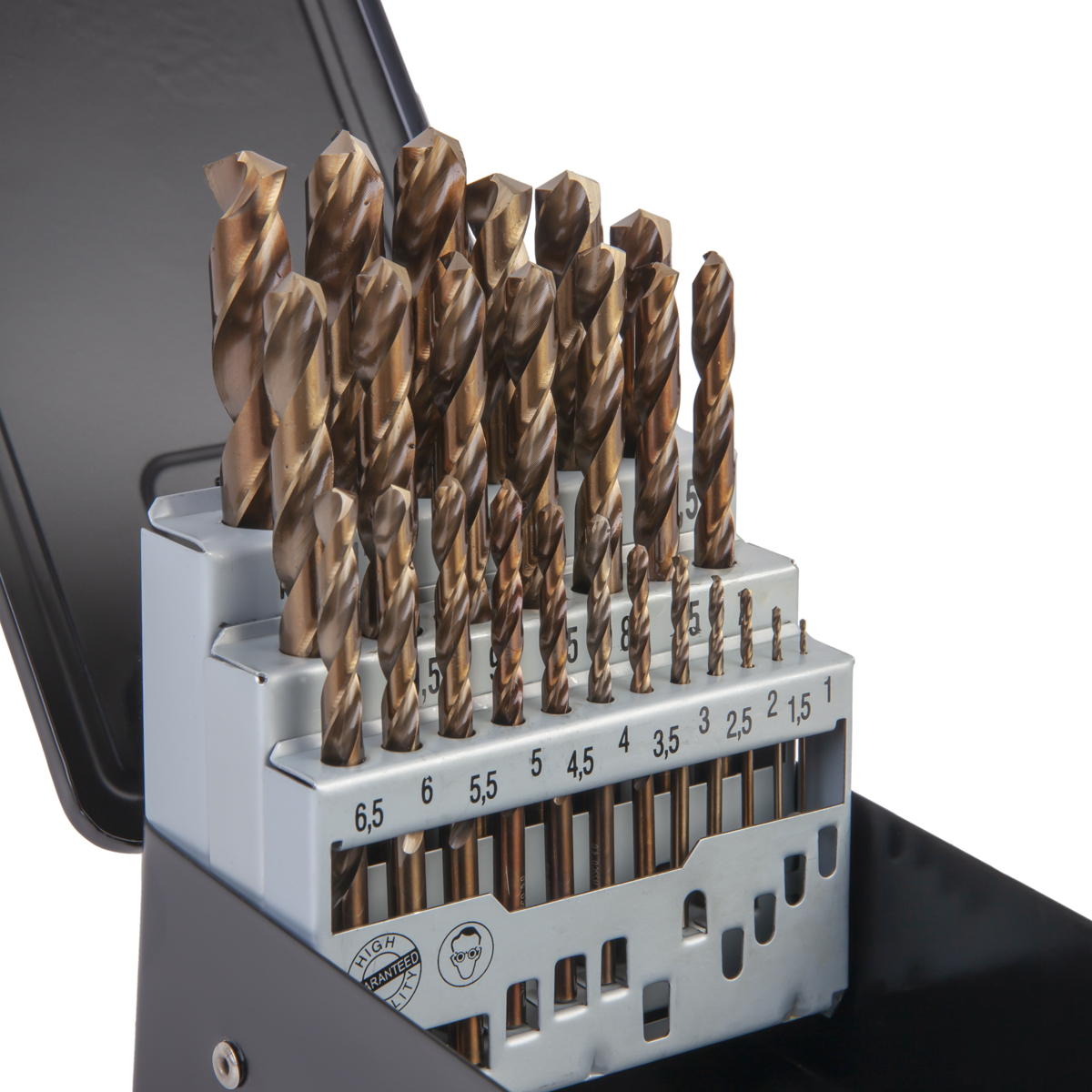 Набор сверл по металлу 1-13 мм, шаг 0,5 мм, HSS-Co, 25 предметов, металлический кейс