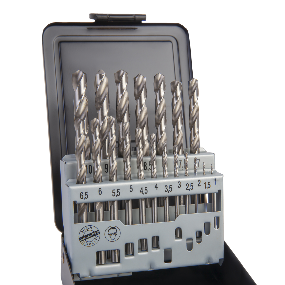 Набор сверл по металлу 1-10 мм, шаг 0,5 мм, HSS-G, 19 предметов, металлический кейс