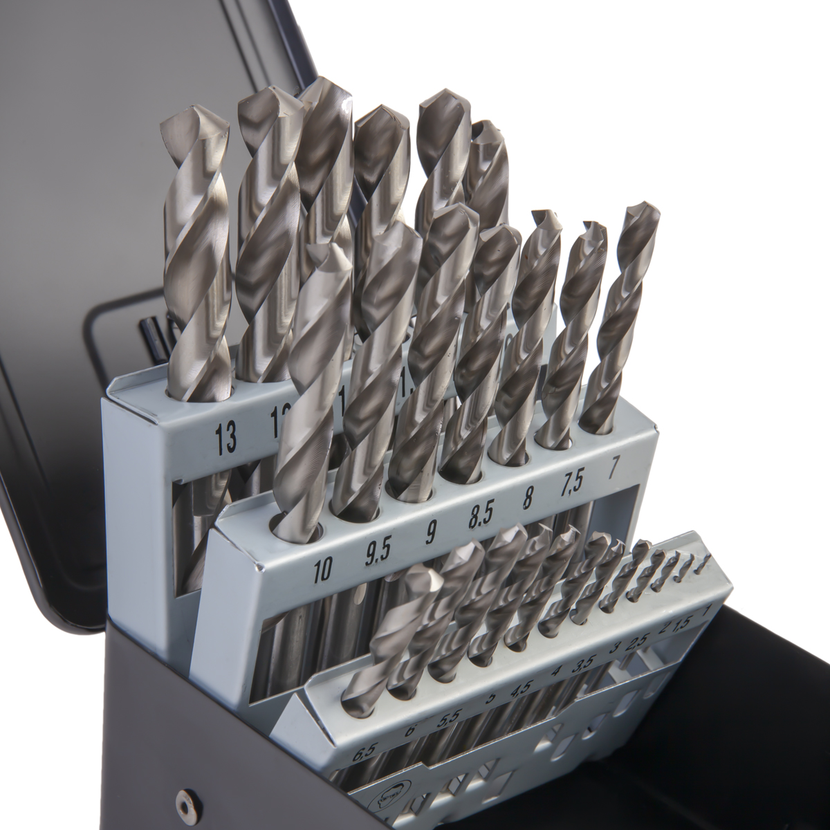 Набор сверл по металлу 1-13 мм, шаг 0,5 мм, HSS-G, 25 предметов, металлический кейс