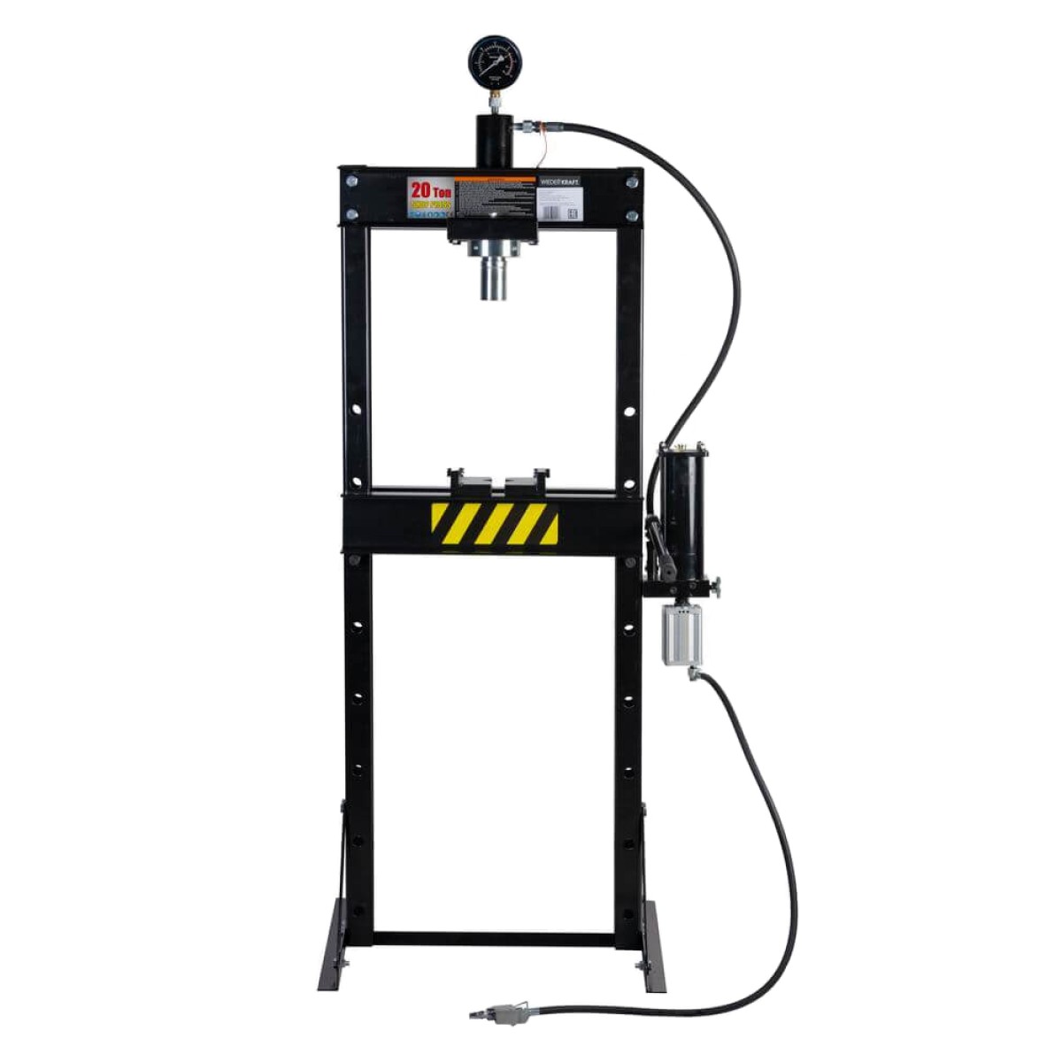 Напольный пресс с ручным и пневмогидравлическим насосом, который развивает усилие в 20 тонн.