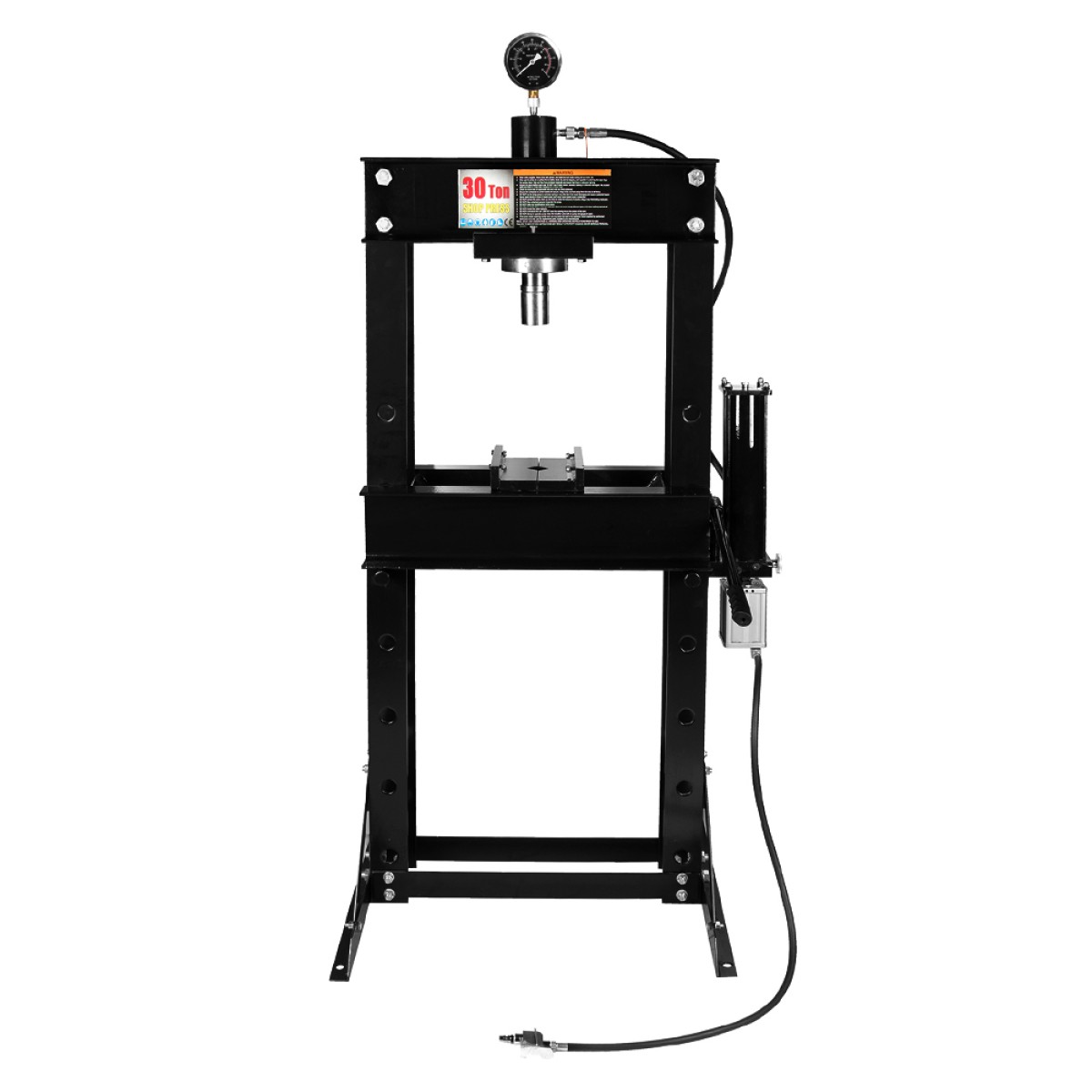 Напольный пресс с ручным и пневмогидравлическим насосом, который развивает усилие в 30 тонн.