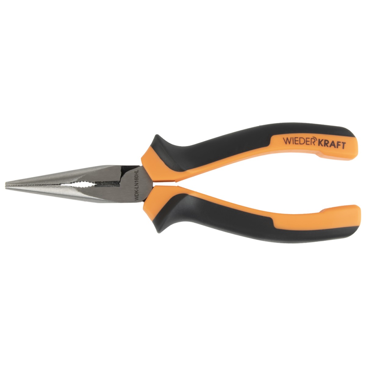 WDK-LN160HL Длинногубцы с двухкомпонентной рукоятью, 160 мм. Соответствуют стандарту DIN ISO 5745. Инструмент изготовлен из высокопрочной стали методом ковки и штамповки, рукояти из двухкомпонентного материала обеспечивают надежный хват и комфорт при выполнении работ. Губки и режущие кромки дополнительно обработаны лазером и усилены индукционным закаливанием.