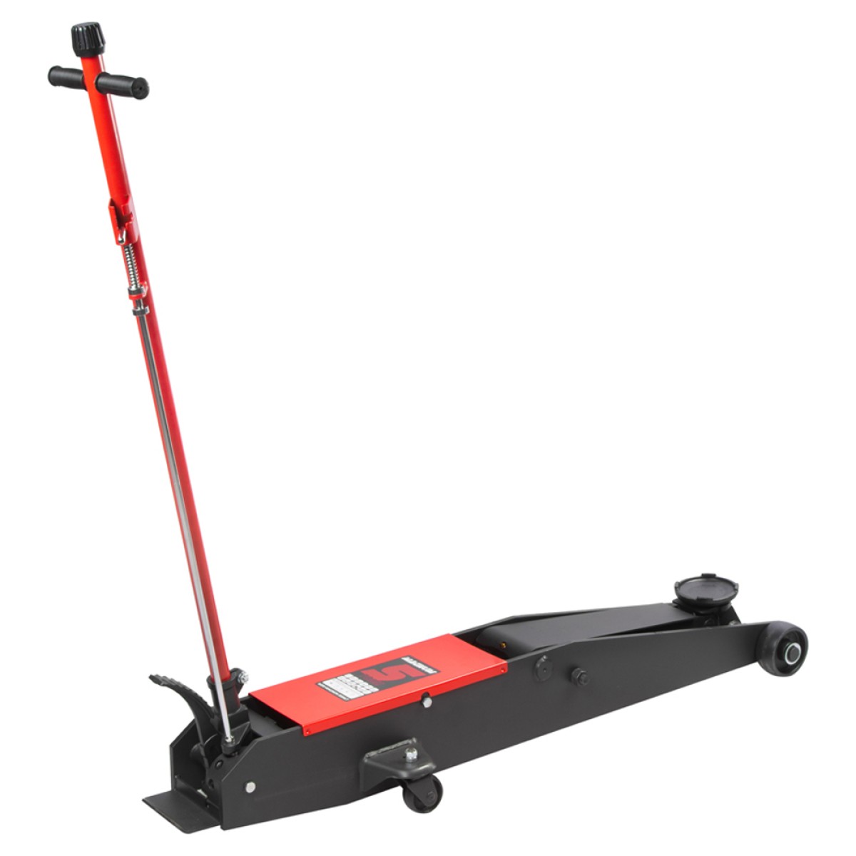 Удлиненный подкатной домкрат на гидравлике грузоподъемностью (до 5 тонн) для подъема автобусов и грузовиков.