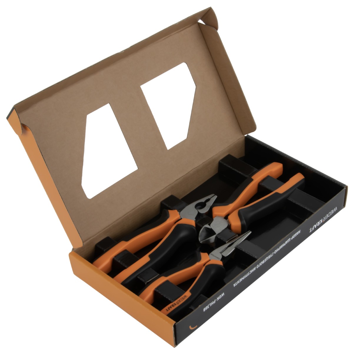 Инструмент в наборе изготовлен из высокопрочной стали методом ковки и штамповки, рукояти из двухкомпонентного материала обеспечивают надежный хват и комфорт при выполнении работ. Губки и режущие кромки дополнительно обработаны лазером и усилены индукционным закаливанием.