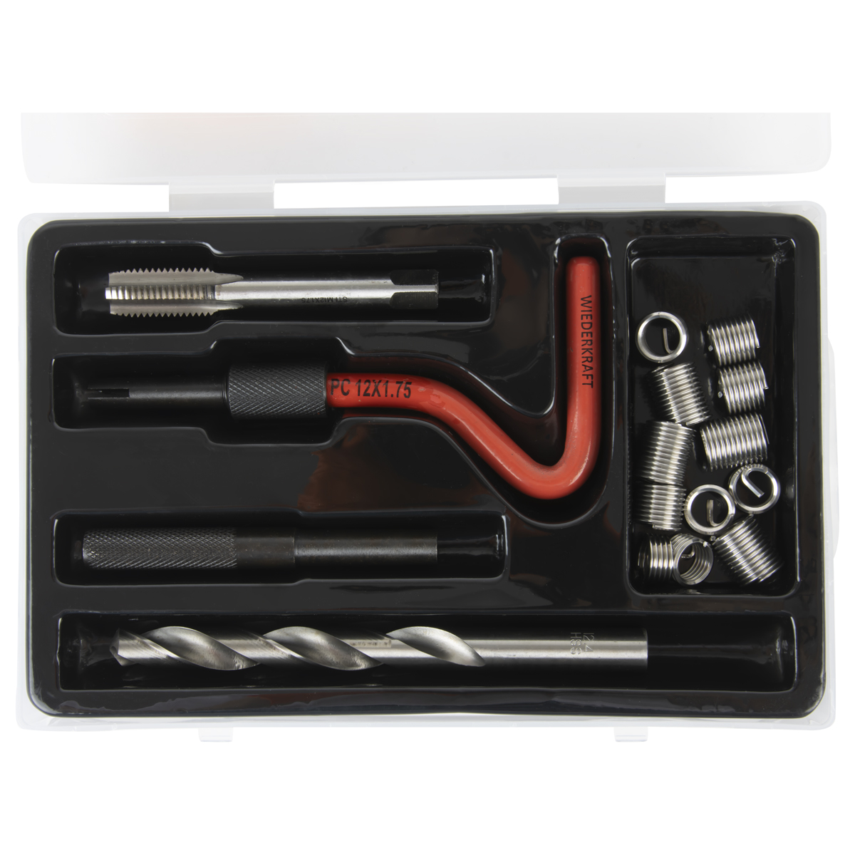 С помощью набора WiederKraft M12x1,75 (16 предметов) можно с легкостью восстановить резьбовое соединение, сохранив при этом исходный диаметр и шаг.