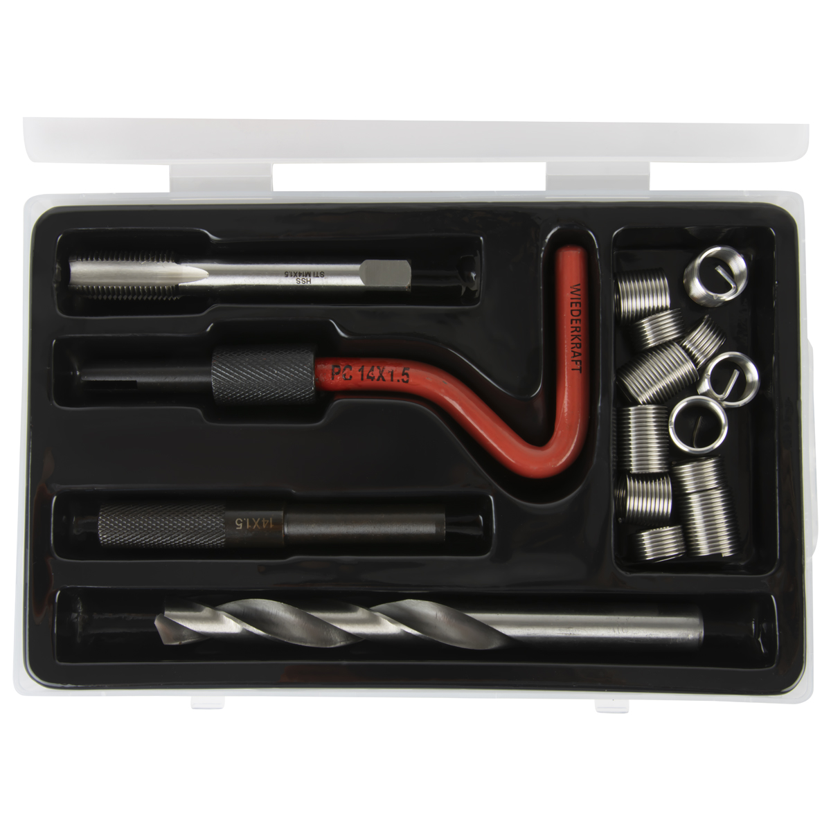 С помощью набора WiederKraft M14x1,5 (16 предметов) можно с легкостью восстановить резьбовое соединение, сохранив при этом исходный диаметр и шаг.