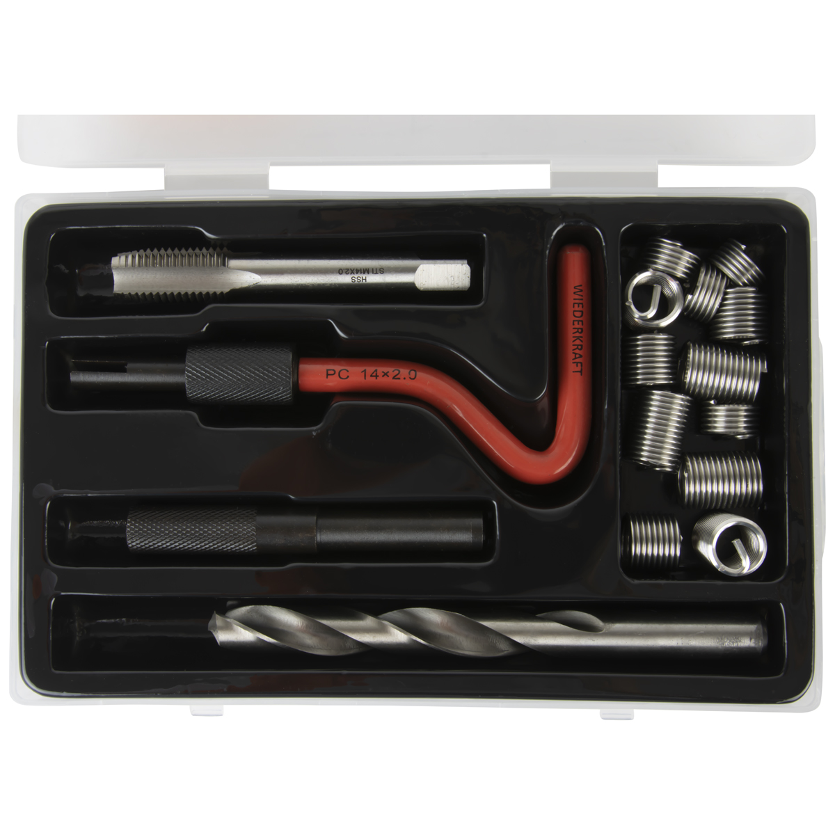 С помощью набора WiederKraft M14x2,0 (16 предметов) можно с легкостью восстановить резьбовое соединение, сохранив при этом исходный диаметр и шаг.
