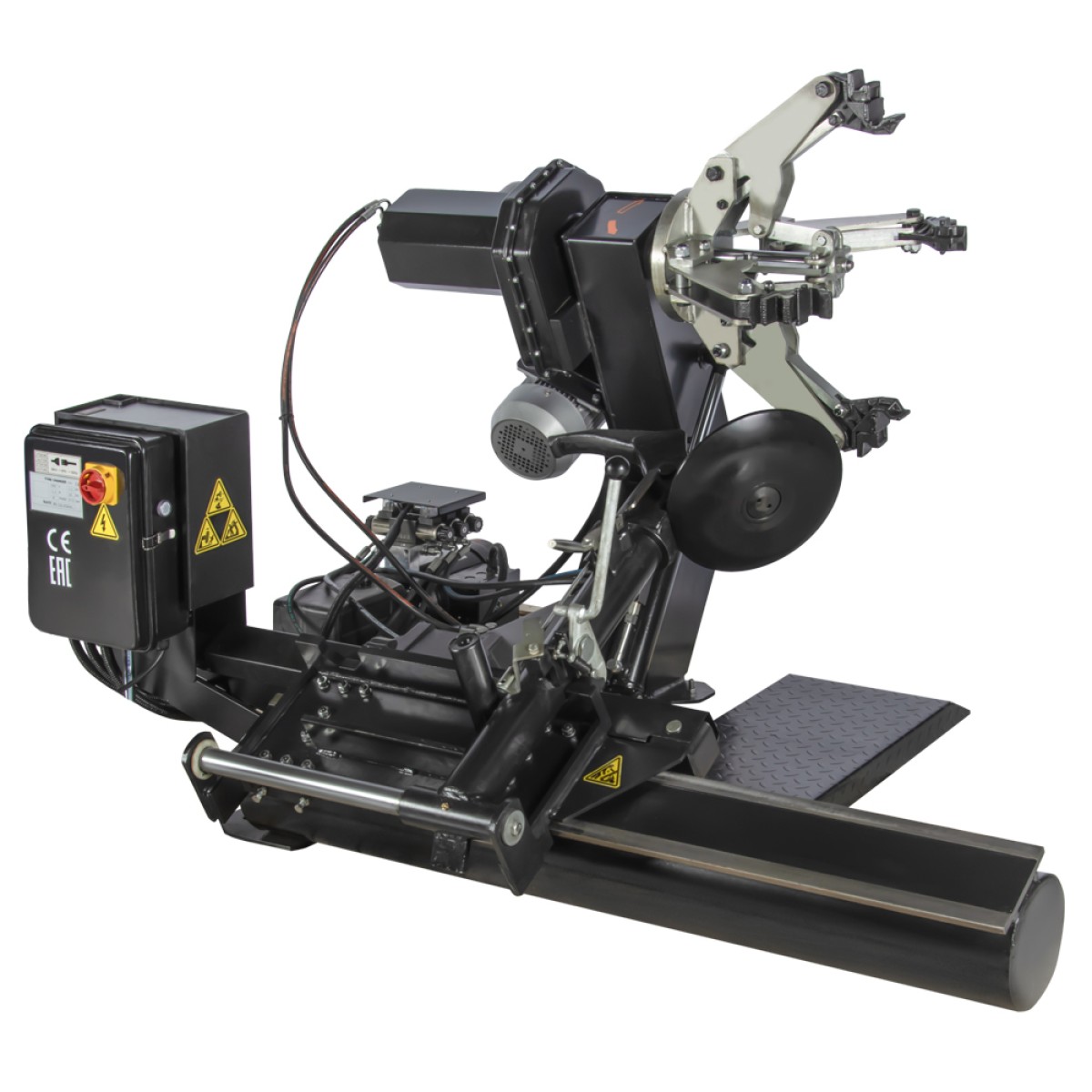 - Возможность одновременного движения зажимного устройства и каретки с монтажно-демонтажным инструментам увеличивает скорость обслуживания крупногабаритных шин, повышая продуктивность рабочего процесса;