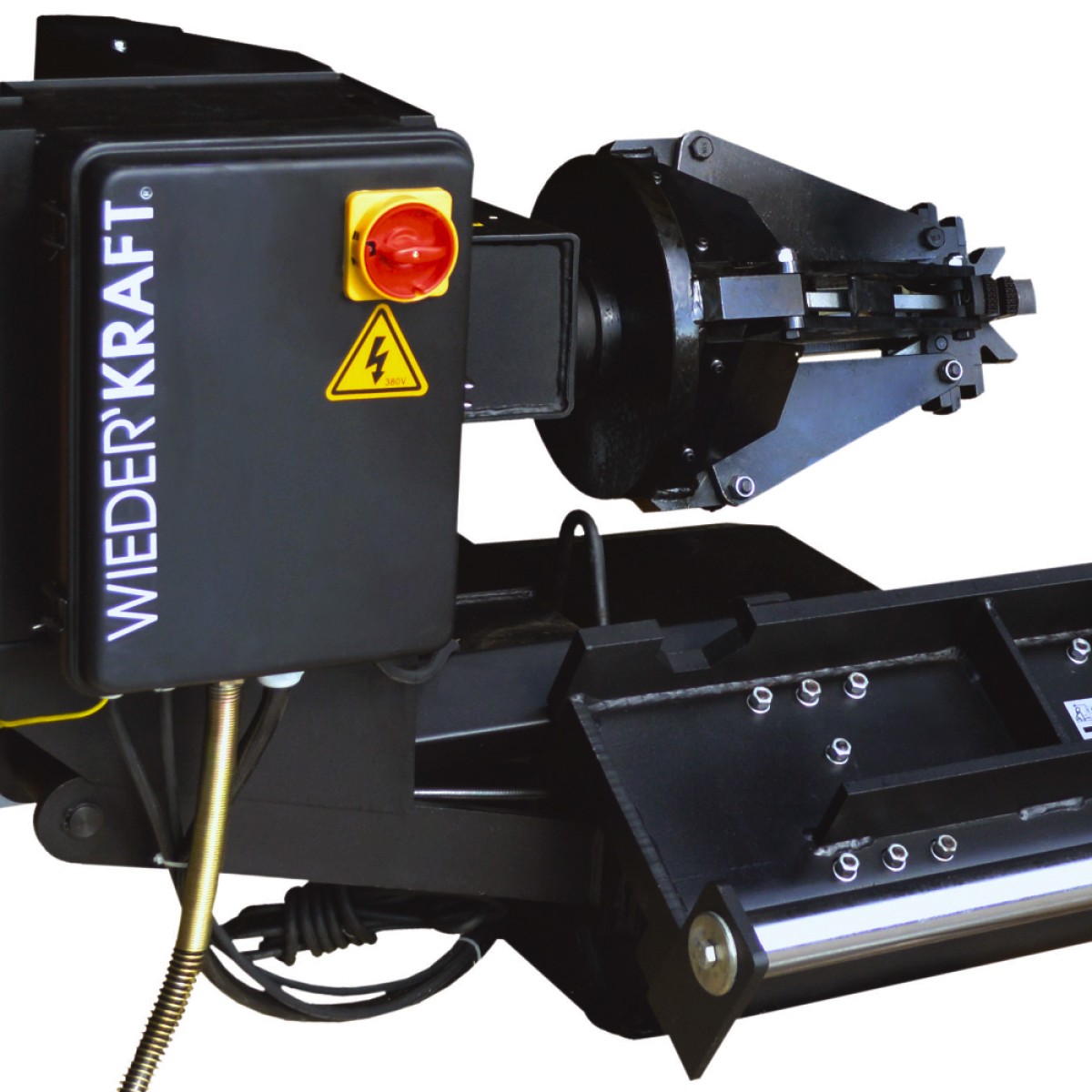 Двухскоростной шиномонтажный станок WiederKraft WDK-T580, предназначенный для эффективного монтажа/демонтажа шин с колесными дисками диаметром от 14 до 56 дюймов. Применяется для сервисного обслуживания грузовых автомобилей, промышленного транспорта, а также дорожной и сельскохозяйственной техники. Обслуживает камерные, бескамерные шины и диски с максимальным диаметром 2300 мм и шириной до 1050 мм. Посадка колеса на цангу «тюльпан» осуществляется с помощью платформы. Управление станком происходит посредством мобильной стойки с джойстиком и педалями, позволяющем оператору работать в любой точке вокруг станка. Рабочий узел подстраивается под ширину колеса, плавно передвигаясь по направляющим. Конструкция стенда предусматривает двухскоростное вращение в двух направлениях (6 и 8 об/мин). Привод закрыт прочным каркасом, предотвращающем попадание внутрь пыли и грязи. Стабильное подключение к сети 380 вольт гарантирует надежную работу станка на протяжении всего рабочего процесса. Детали станка изготовлены высокопрочной закалённой стали и имеют высокий рабочий ресурс.