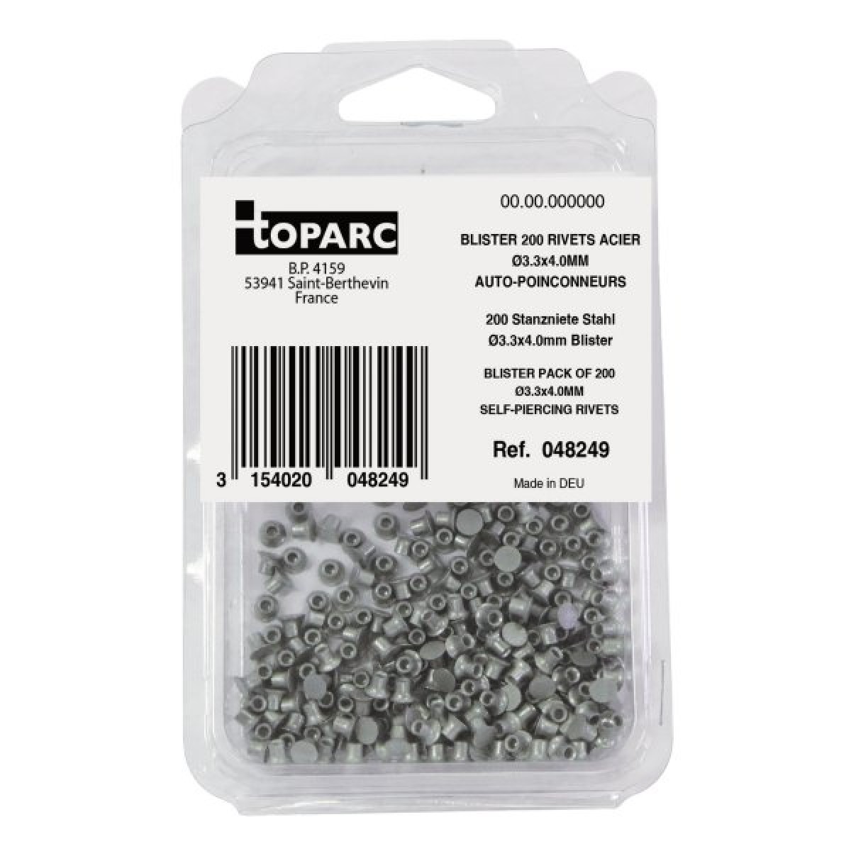 Стальные самопроникающие заклёпки GYS диаметром 3.3 мм и длиной 4 мм для создания высокопрочного соединения однородных или разнородных многослойных листовых материалов.