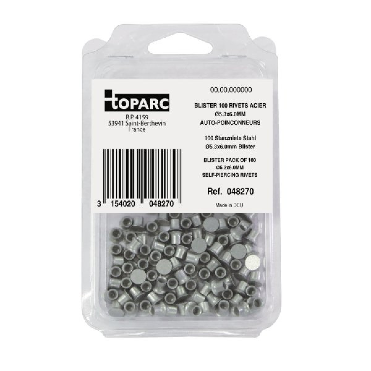 Стальные самопроникающие заклёпки GYS диаметром 5.3 мм и длиной 6 мм для создания высокопрочного соединения однородных или разнородных многослойных листовых материалов.