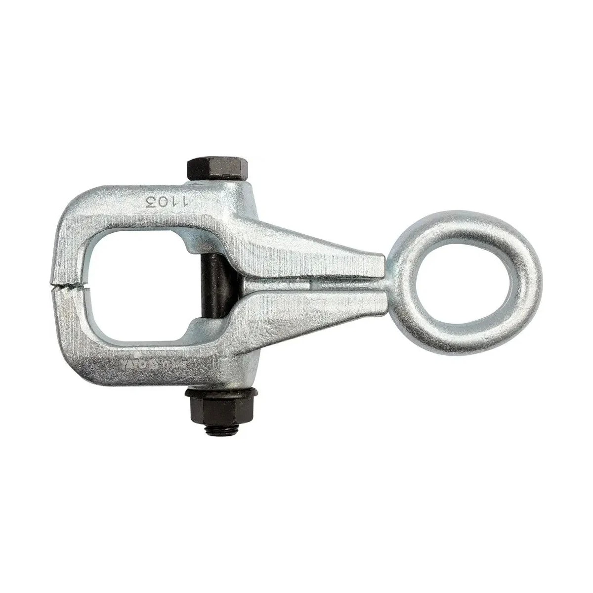 Зажим для кузовных работ используется в автомастерских и автосервисах в процессе ремонта кузова автомобиля. В процессе работы зажим обеспечивает необходимое тяговое усилие, за счет которого мастер исправляет деформацию целевой конструкции, то есть кузова. Кузовной зажим задействует гидравлическое давление, в результате которого исправляются недостатки геометрической формы. Модель выполнено из высокопрочной стали, благодаря чему отличается надежностью и долговечностью.