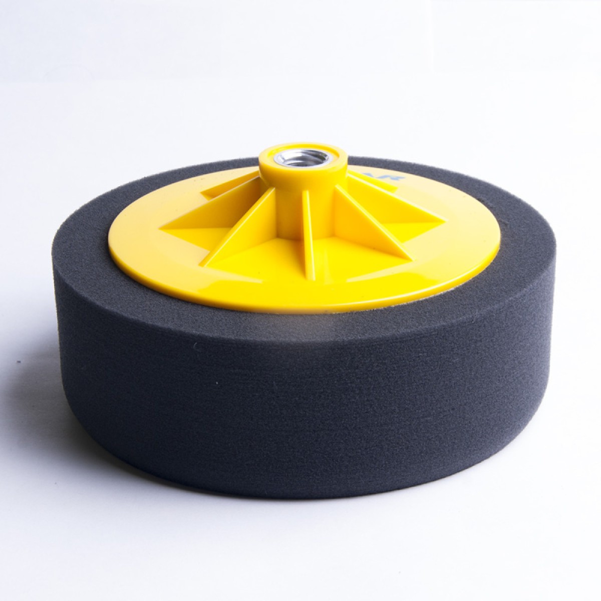 Поролоновый полировальный круг с резьбой, черного цвета, мягкий, диаметр 150 мм, толщина 50 мм.