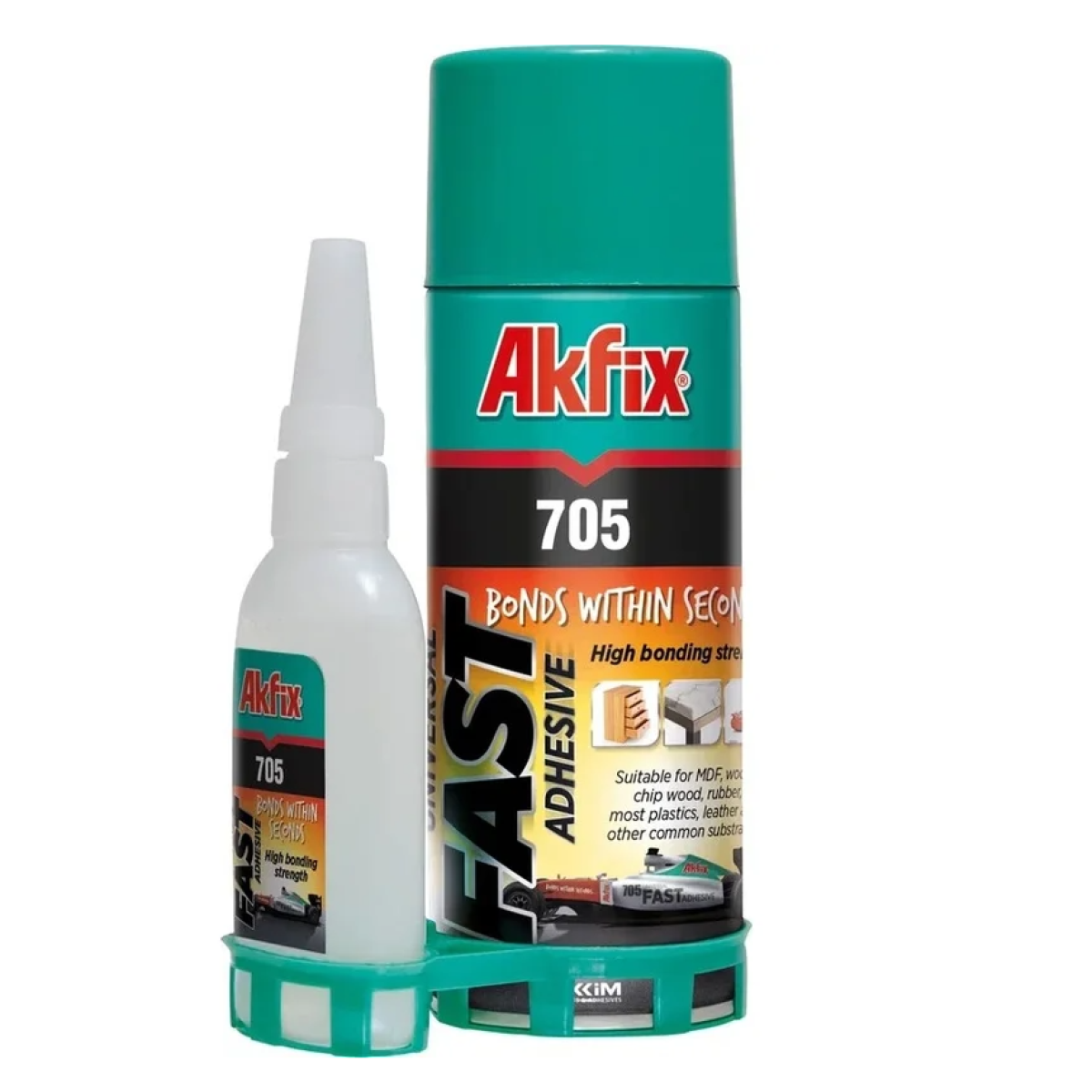 Набор для склеивания Akfix 705 (В50 гр + 200 мл) AN705_50 состоит из быстро полимеризующегося клея высокой вязкости на цианокрилатной основе и аэрозоля-активатора.
