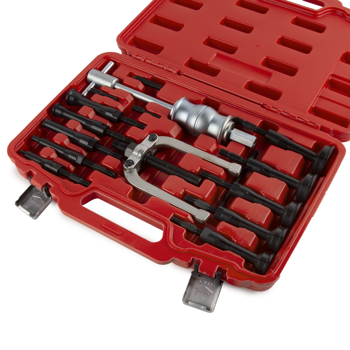 С помощью набора специнструмента можно извлечь внешнюю обойму врезных подшипников из корпуса различных агрегатов. Благодаря цанговым зажимам, съемник является универсальным инструментом. Подходит как для профессионального, так и домашнего использования